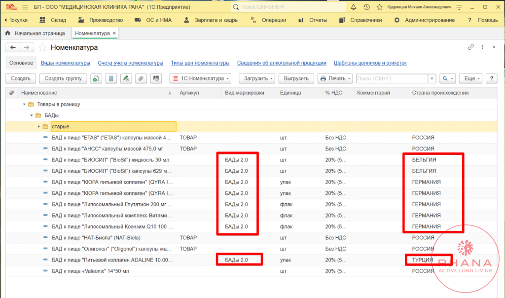 - Внести товарную позицию в справочник «Номенклатура»