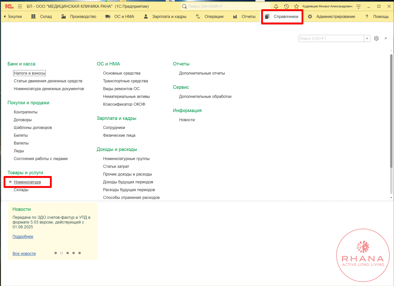 - Кладовщик – ведение справочника номенклатуры в обеих системах