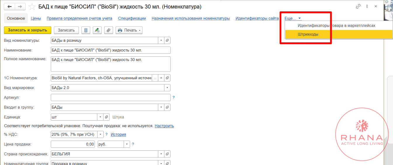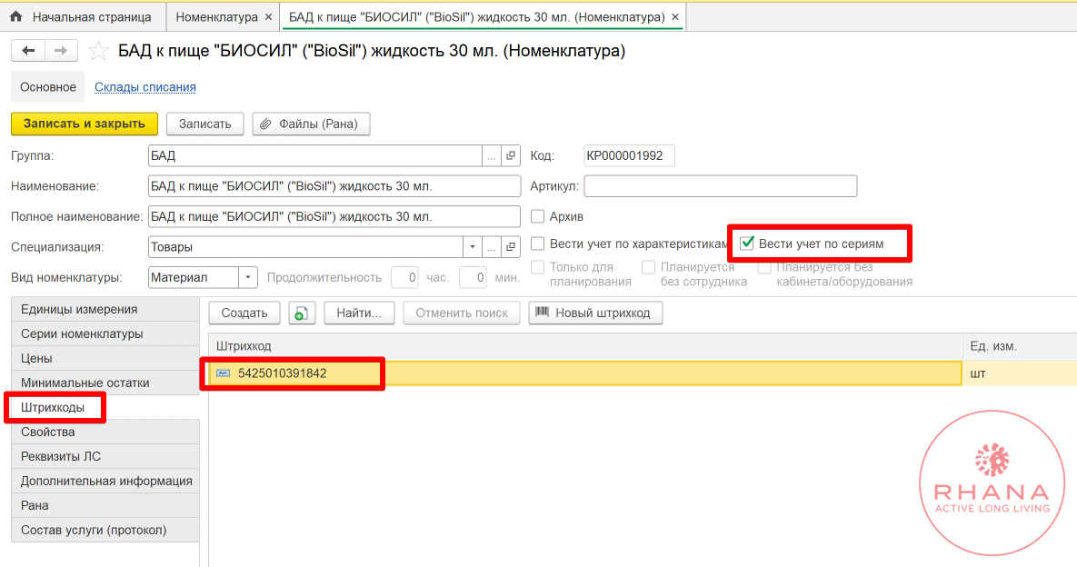 - Добавить номенклатуру по полосковому штрихкоду