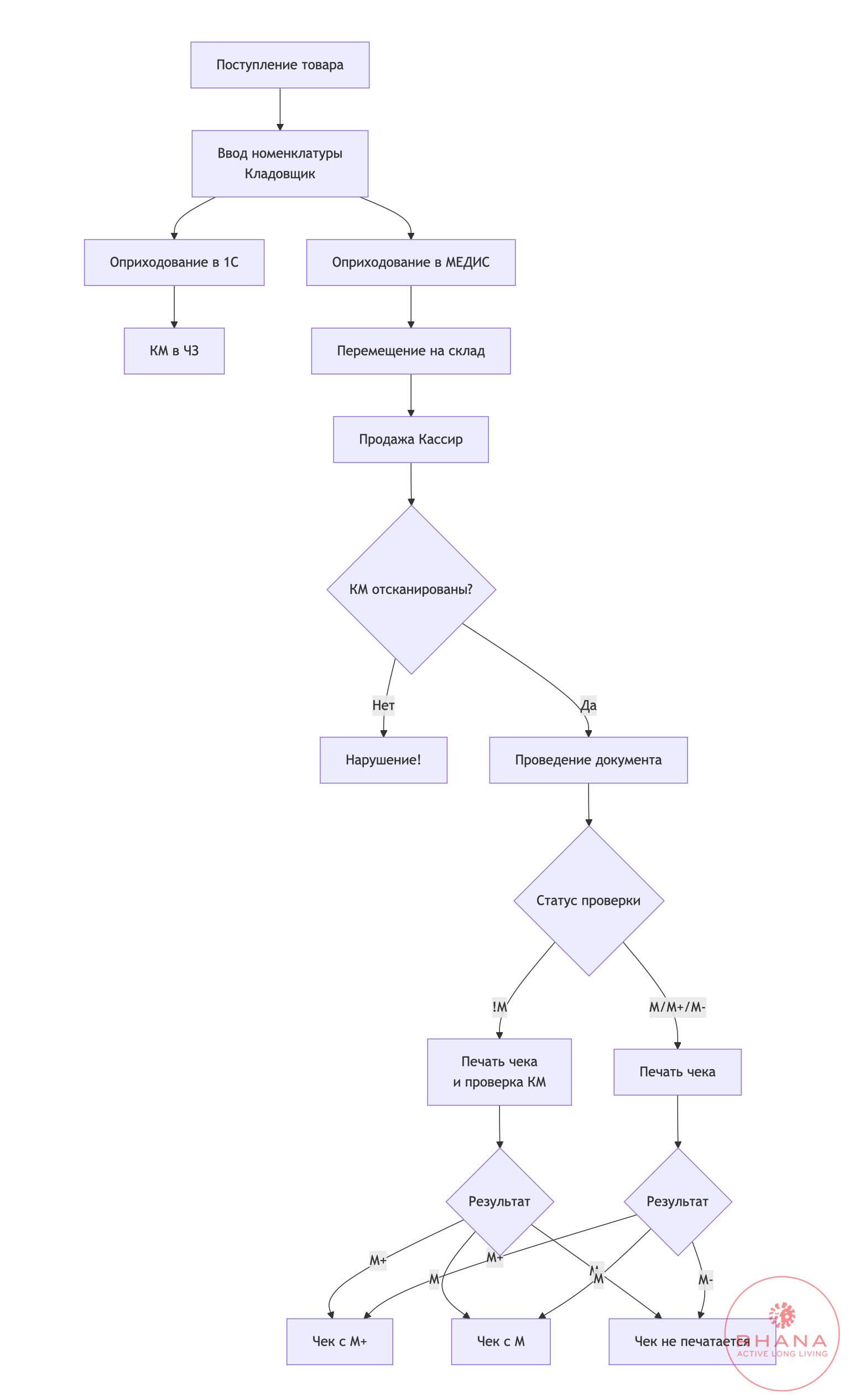 ℹ️ При оформлении поступления в системе МЕДИС сканирование кодов маркировки не требуется. Коды маркировки будут проверяться только на этапе выбытия (розничной продажи).